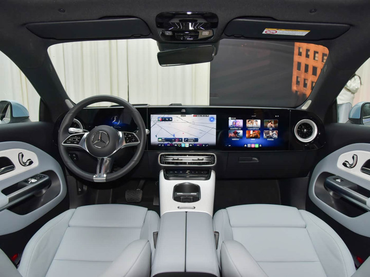进入车内,北京奔驰 CLA EV 的内饰彻底颠覆了传统燃油 CLA 的设计逻辑,以 “长轴舒适 + 数字豪华” 重构体验。中控台采用 “三层悬浮式” 设计,最上层的 MBUX 超级屏由 10.25 英寸仪表、14 英寸中控屏与 14 英寸副驾娱乐屏组成,精准倾斜 6 度的角度经过百次人体工程学模拟,完美避免日间反光与夜间映影问题。屏幕下方的 “触控 + 物理旋钮” 组合保留了奔驰标志性的精致阻尼感,而空间表现是国产长轴版的核心优势:身高 180cm 的乘客在前排调整至合适坐姿后,头部剩余一拳两指;后排腿部空间达到两拳,头部空间一拳,相比上一代 CLA 增加 3 指,这得益于轴距加长与纯电平台取消传动轴的双重加持。