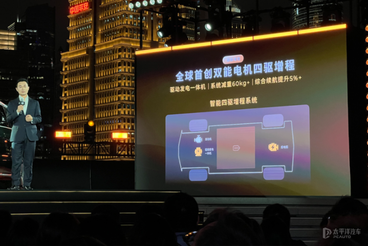 纯电版配备全栈1000V三电系统与115kWh超级混合电芯,CLTC纯电续航720公里,综合功率540kW,轮端扭矩8770牛・米,搭载行业首创的34合1超级热管理模块。